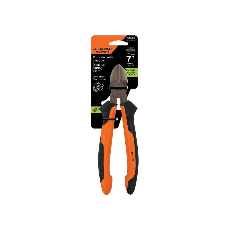 Alicate de corte diagonal 7" 1000v Electricista aislado Comfort Grip acero al cromo vanadio, T202-7X 12349 Truper