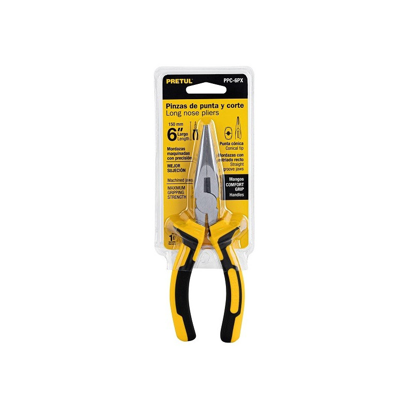 Alicate de punta y corte 6" Comfort Grip acero al carbono, PPC-6PX 22670 Pretul