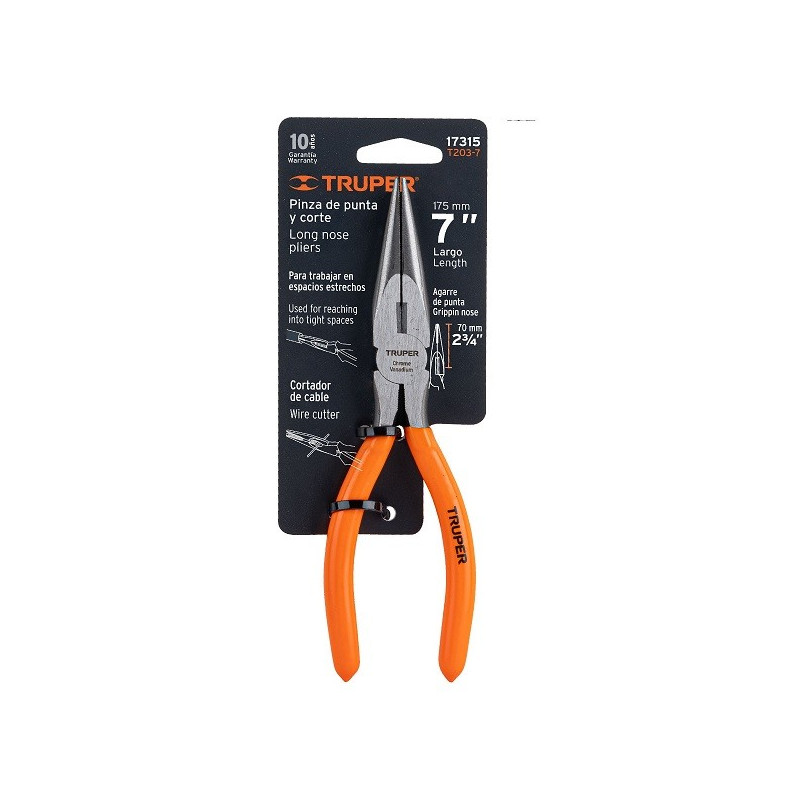 Alicate de punta y corte 7" acero al cromo vanadio mango de vinil, T203-7 17315 Truper