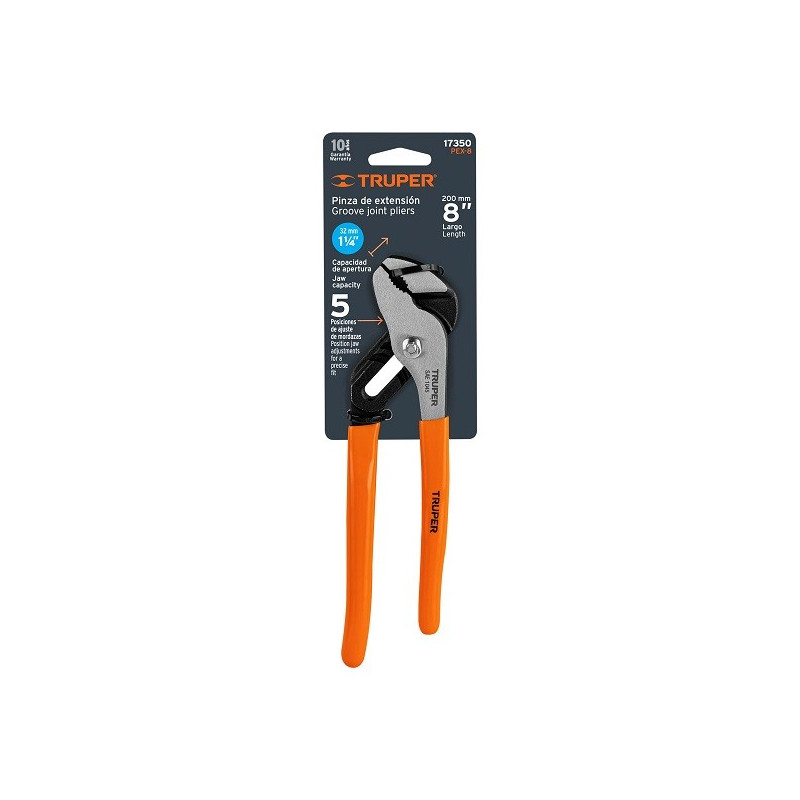 Alicate picoloro 10" acero al carbono mango de vinil, PEX-10 17351 Truper Fabricadas en acero al carbono Acabado pulido para fácil limpieza Mangos de PVC Puntas planas y mordazas con estriado recto