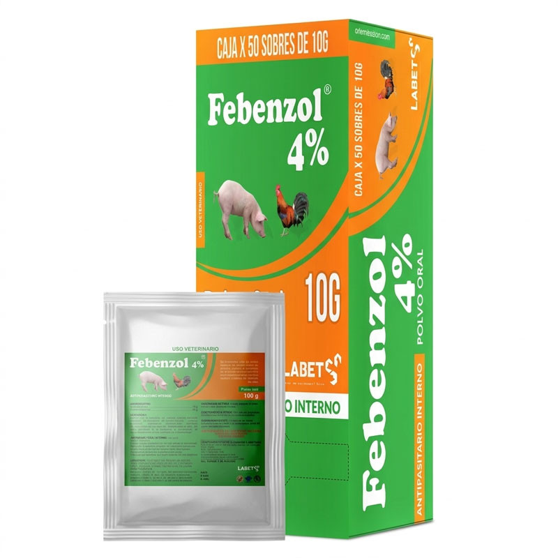 Febenzol 10gr Caja x 50 Sobres Fenbendazol Antiparasitario Uso Premezcla, Labet
