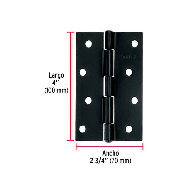 Bisagras Rectangular 4" x2-3/4" Acero Negro CMbola 1.8mm Hermex 45638