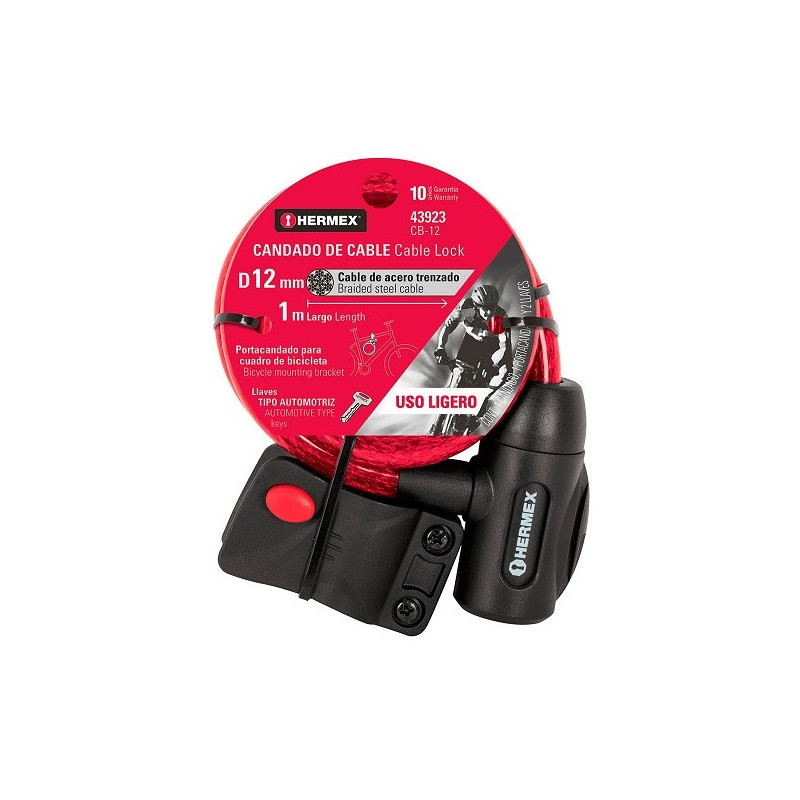 Cable de Seguridad con llave 12mm 1m, en acero con cubierta PVC, Incluyen 2 llaves tipo automotriz, CB-12 43923 Hermex