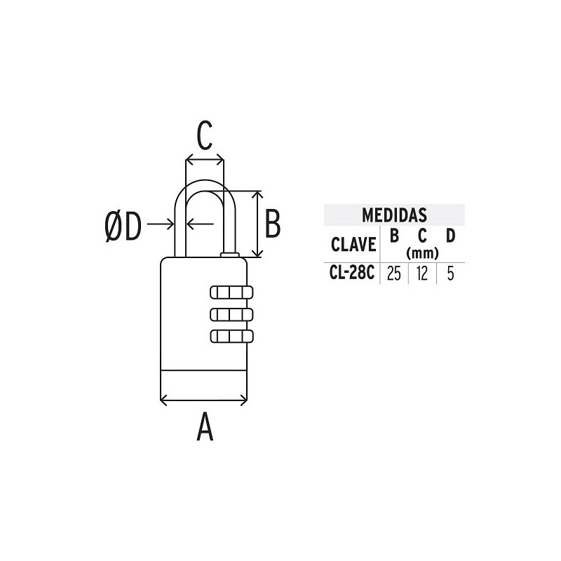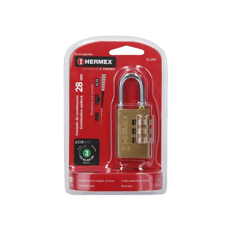 Candado de Combinacion 28mm Seguridad 3, 3 combinaciones personalizadas, CL-28C 43347 Hermex