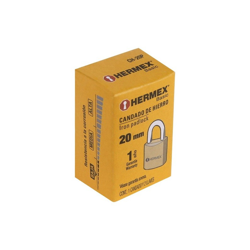 Candado de Hierro 20mm Seguridad 1, 2 llaves tradicional, CH-20P 22526 Hermex