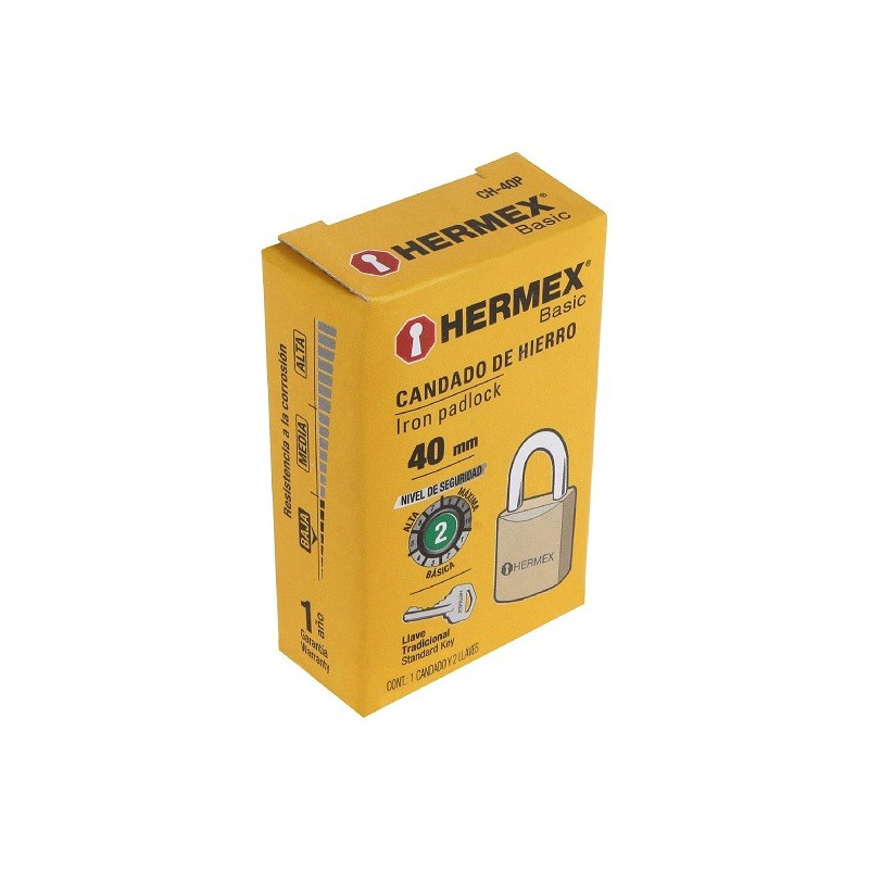 Candado de Hierro 40mm Seguridad 2, 2 llaves tradicional, CH-40P 23518 Hermex