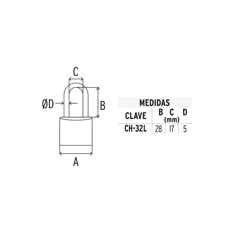 Candado de Hierro Arco Largo 32mm Seguridad 3, 2 llaves tradicional, CH-32L 43793 Hermex