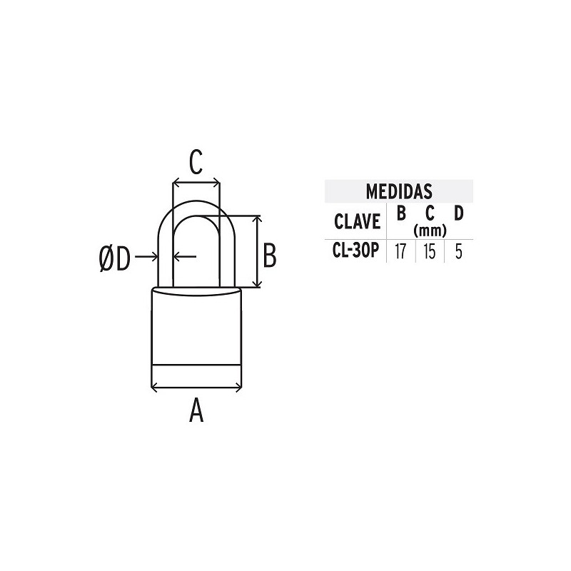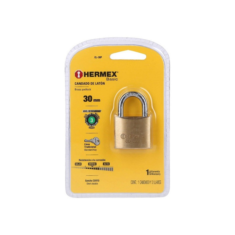 Candado Pulido Basico 30mm Seguridad 3, Incluyen 2 llaves Tradicional, CL-30P 23514 Hermex