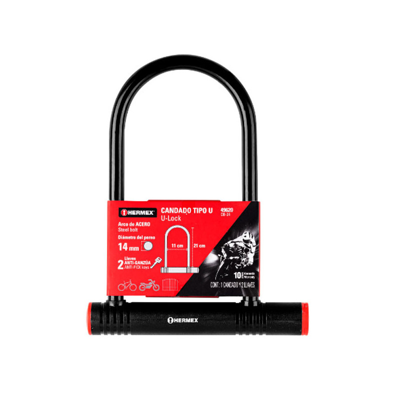 Candados 12mm Rigido Tipo "U" bicicletas motocicletas Portones Hermex 49620