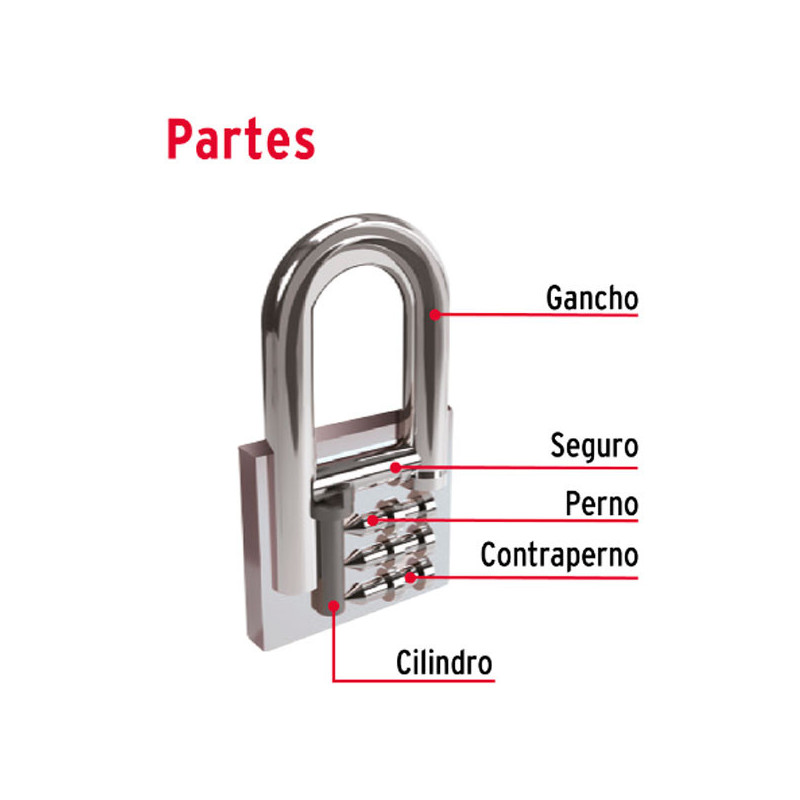 Candados Antipalanca 70mm S4 Hierro Hermex 23540 Cuerpo de hierro con acabado arena Seguro de balín que proporciona mayor seguridad Cilindro de latón sólido con 5 pines que brinda resistencia a robos Mecanismo interno resistente a la corrosión Para cortina metálica