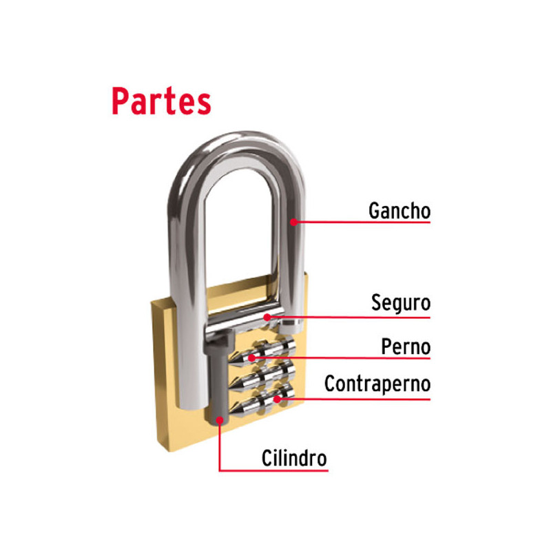 Candados Antipalanca 75mm S6 Hermex 23512 Cuerpo de latón con acabado pulido Seguro de balín que proporciona mayor seguridad Cilindro de latón sólido con 5 pines que brinda resistencia a robos Mecanismo interno resistente a la corrosión Para cortina metálica
