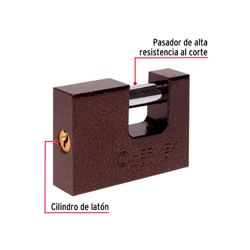 Candados Antipalanca 80mm S4 Hierro Hermex 22517 Cuerpo de hierro con acabado arena Seguro de balín que proporciona mayor seguridad Cilindro de latón sólido con 5 pines que brinda resistencia a robos Mecanismo interno resistente a la corrosión Para cortina metálica