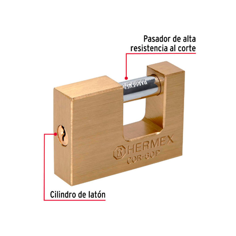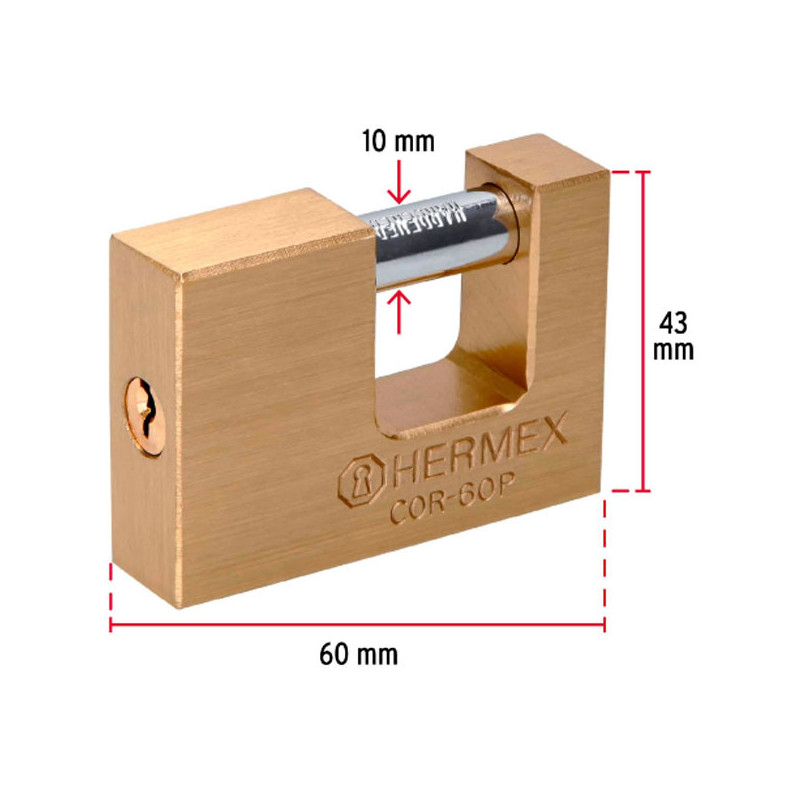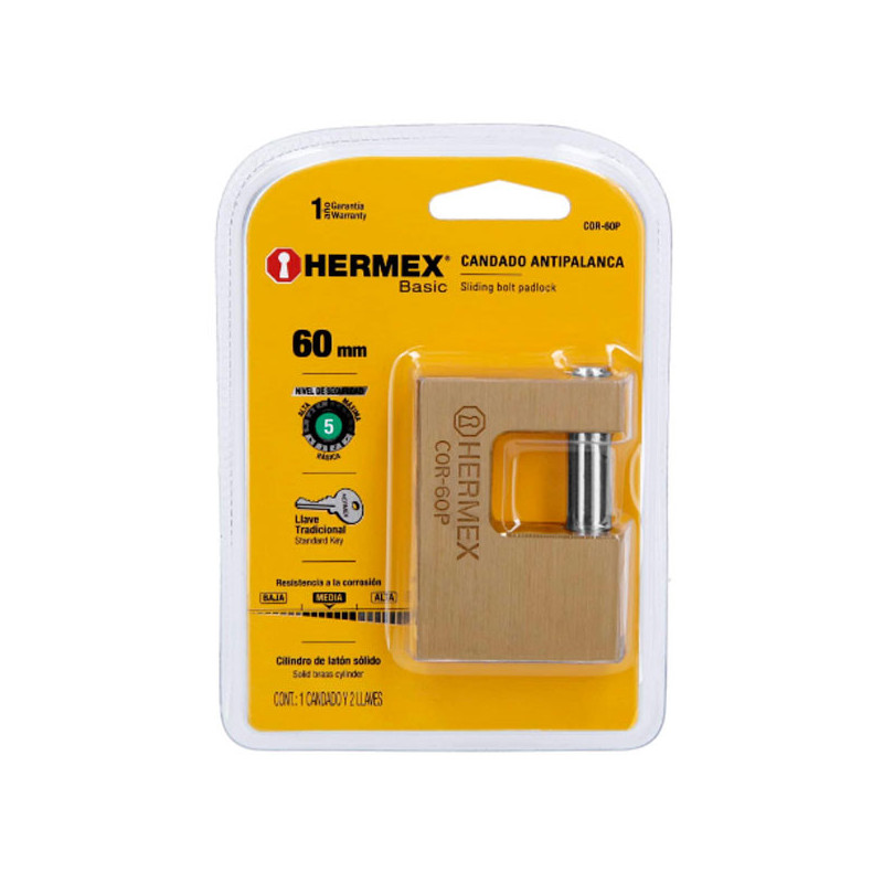 Candados Antipalanca 60mm S3 Hierro Hermex 22516 Cuerpo de hierro con acabado arena Seguro de balín que proporciona mayor seguridad Cilindro de latón sólido con 4 pines que brinda resistencia a robos Mecanismo interno resistente a la corrosión Para cortina metálica
