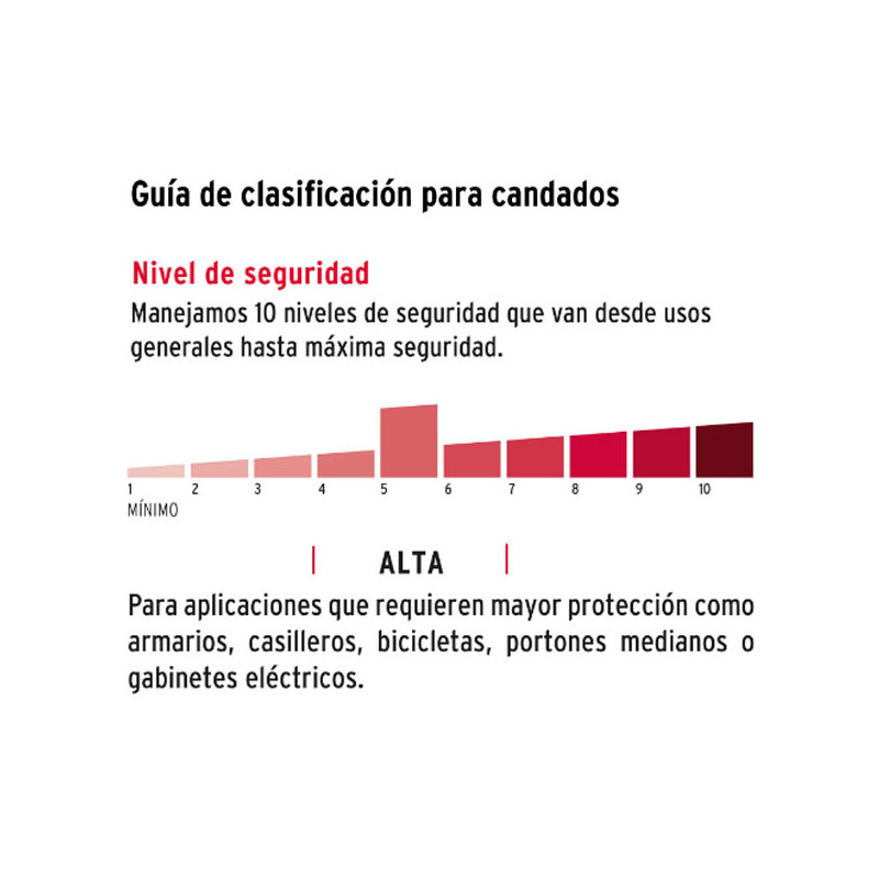 Candados Antipalanca 70mm S4 Hierro Hermex 23540 Cuerpo de hierro con acabado arena Seguro de balín que proporciona mayor seguridad Cilindro de latón sólido con 5 pines que brinda resistencia a robos Mecanismo interno resistente a la corrosión Para cortina metálica