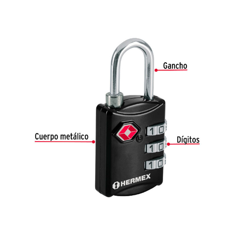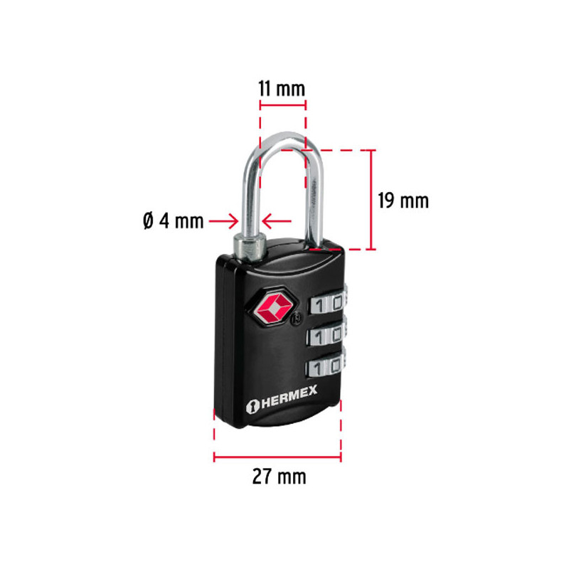 Candados de Combinacion 27mm 3Digitos Maletero Maleta Hermex 46291