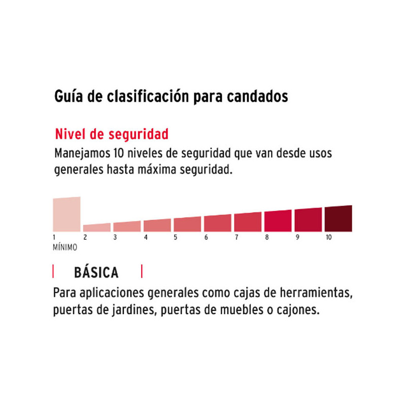 Candados Antipalanca 70mm S4 Hierro Hermex 23540 Cuerpo de hierro con acabado arena Seguro de balín que proporciona mayor seguridad Cilindro de latón sólido con 5 pines que brinda resistencia a robos Mecanismo interno resistente a la corrosión Para cortina metálica
