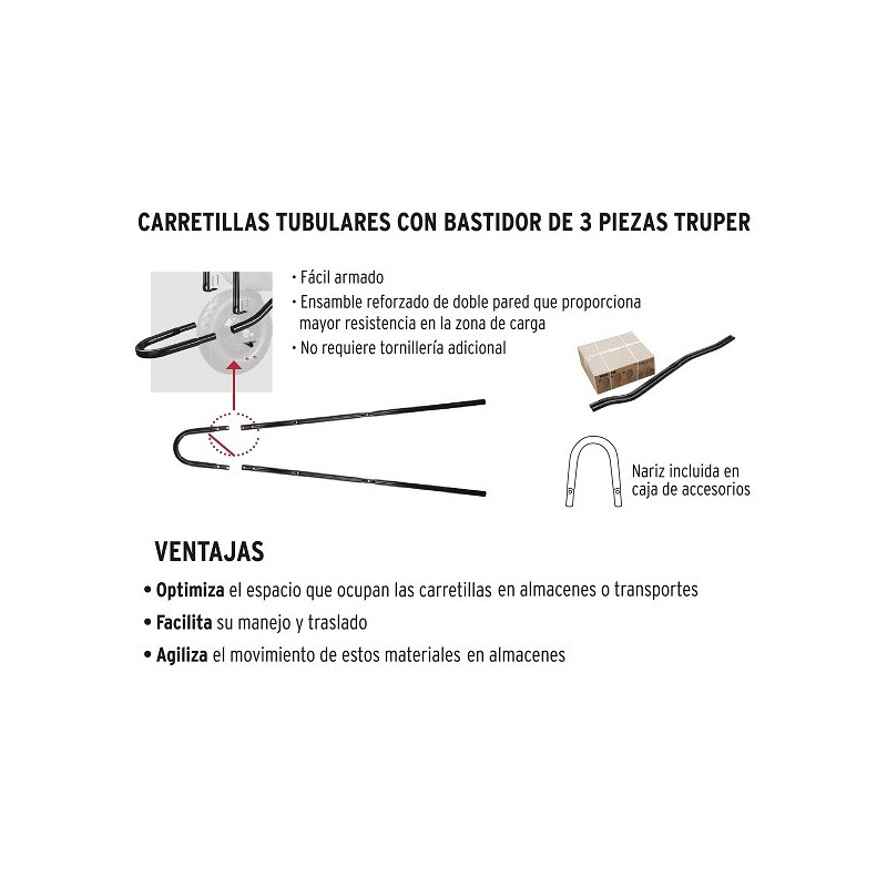 Carretilla Reforzada 6ft 100L, Llanta Neumatica 16X4" Soportan 580kg Calibre 21, CAT-60ND 11776 Truper Llanta neumática reforzada con rin de 3 aspas, diseño robusto y resistente al desgaste, rodada con mayor estabilidad Concha de lámina espesor 0.9 mm Bastidor tubular calibre 16 (1.5 mm) con grips antiderrapantes Soportes de uso pesado, mayor estabilidad...