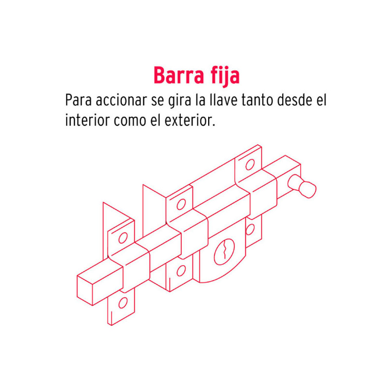 Cerradura de barra fija, la barra se acciona al girar la llave, tanto del interior como del exterior