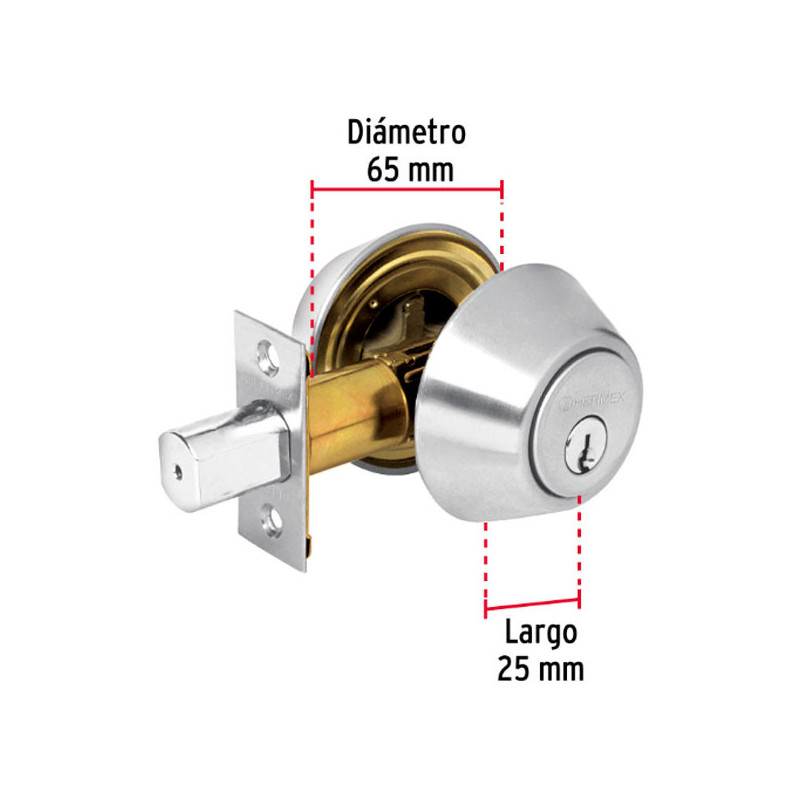 Cerraduras de Doble Barra Doble Cerrojo Hermex 43501 Cilindro de latón sólido para mayor resistencia contra robos Doble cerrojo de acero sólido con mecanismo que se extiende en direcciones opuestas Cerradura de doble barra, corte en escuadra en los extremos para añadir extensiones Para colocarse en cortinas y puertas metálicas