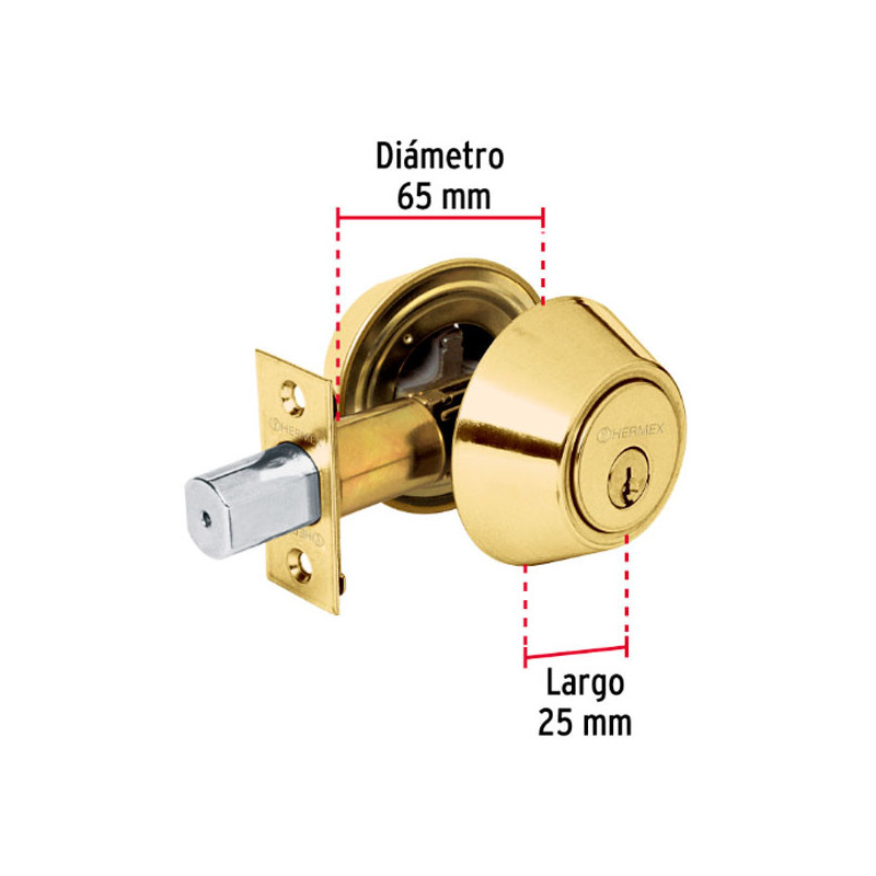 Cerraduras de Barra Libre Doble Cilindro Hermex 43500 Doble cilindro de latón sólido interior y exterior de 5 pernos para mayor resistencia contra robos Cerrojo de acero sólido de 6 pasos hacia la izquierda o derecha Cerradura de barra libre, se acciona cuando se gira la llave desde el exterior, pero en el interior puede deslizarse con la mano, siempre y...