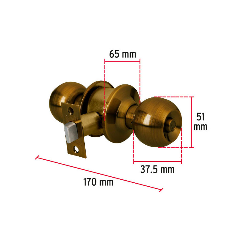 Cerraduras Pomo Oval Laton Antiguo Baño Hermex 43453 Cerrojo con botón de emergencia al exterior y botón de seguridad al interior Mecanismo cilíndrico con cilindro de latón sólido Perilla de acero inoxidable y escudo de latón, acabado latón antiguo Para colocación en puertas con espesor de 1-1/4" a 1-3/4" (32 a 45 mm)