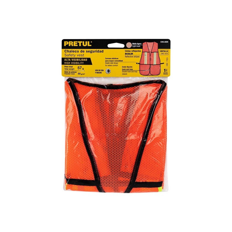 Chaleco de Seguridad Unitalla Naranja Cintas Dobles 3/4" Alta Visibilidad, CHS-200N 21025 Pretul