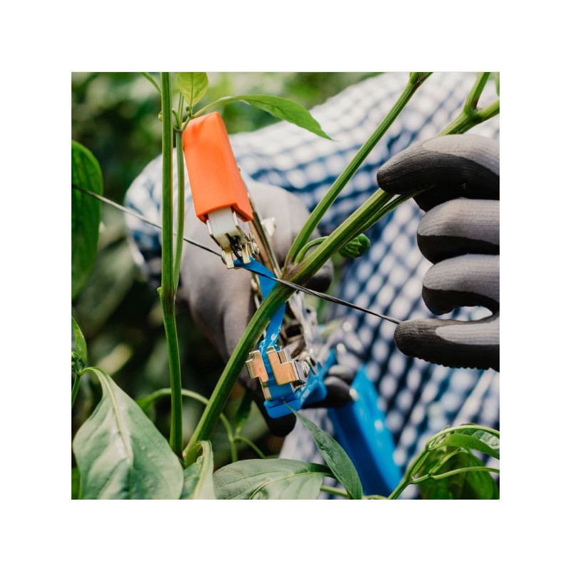 La atadora fue desarrollada para que de manera simple y efectiva, el operador pueda guiar los tallos de las plantas y ayudar a su correcto crecimiento.