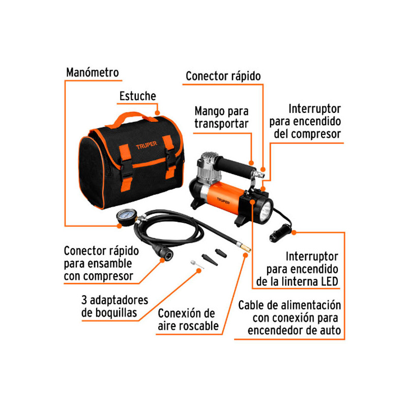 Compresor de Aire 12V Portatil para Auto con Maletin Truper 19999