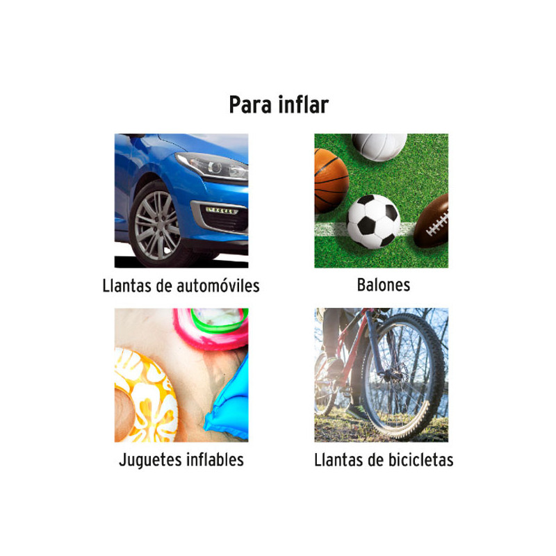 Ideal para inflar balones, juguetes inflables, llantas de bicicletas y neumáticos