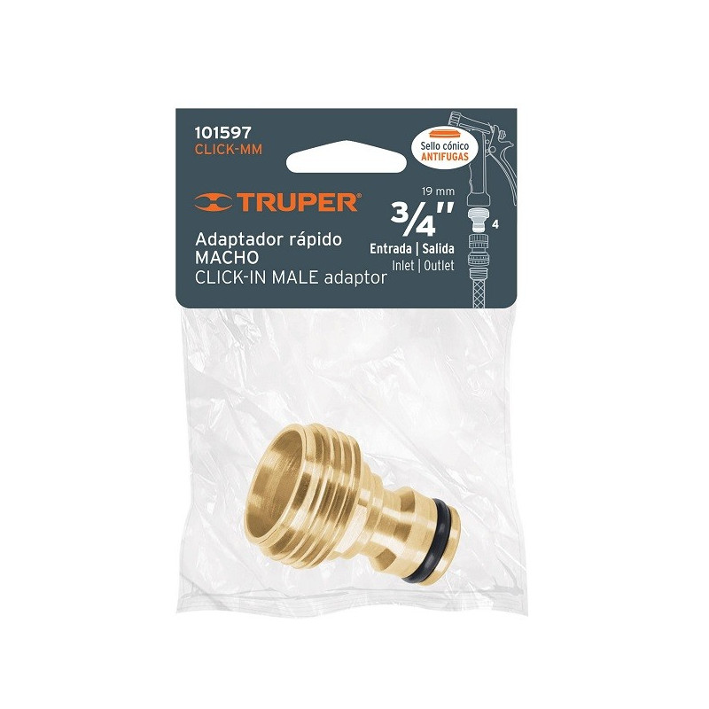 Conector Sistema Click de Conexion Rapida Conexión Roscada Macho 3/4" Conexión y desconexión automática, CLICK-GR 12724 Truper