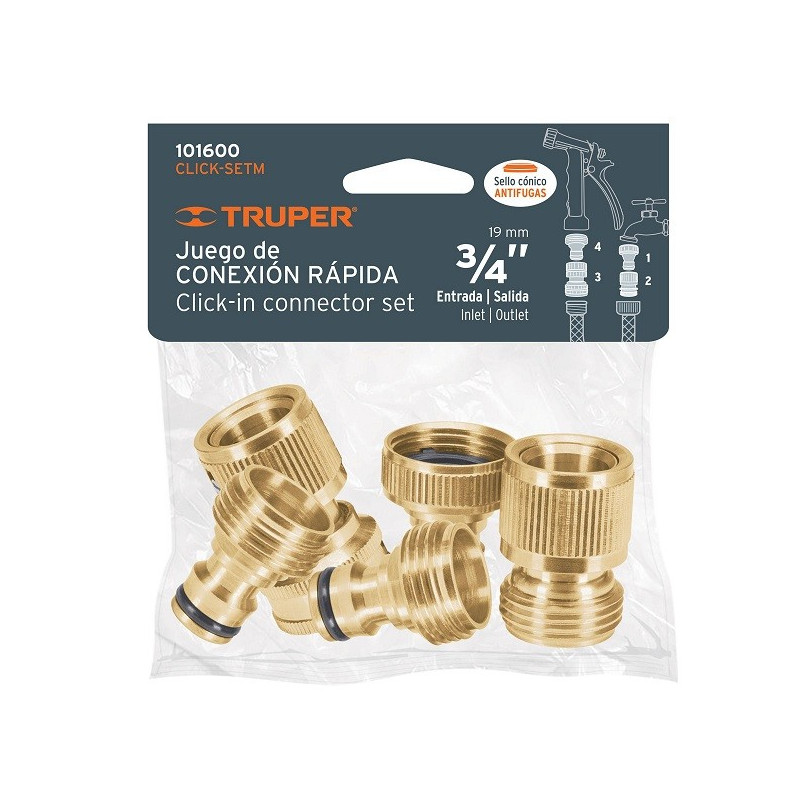 Juego de Conectores Rapidos Sistema Click E3/4 5Piezas, Truper 101600