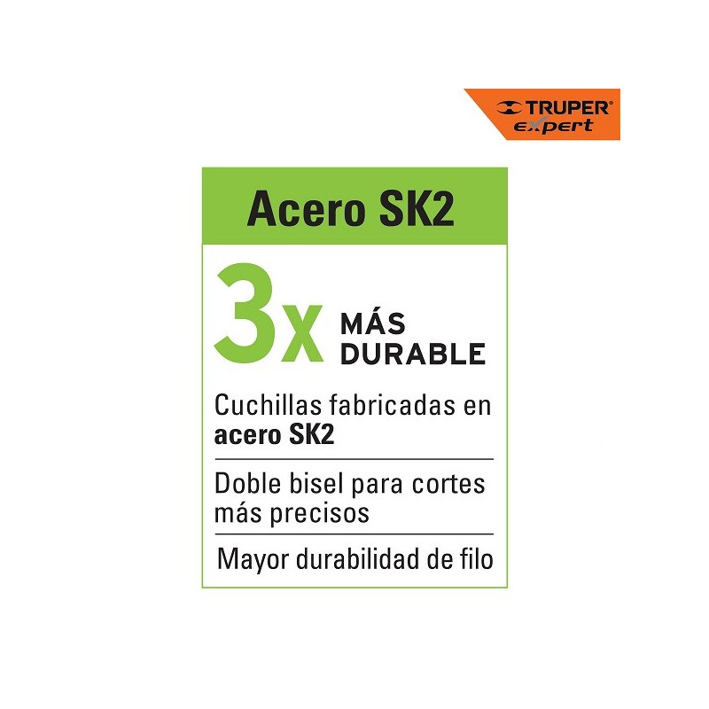 Cuchillas para acrilico para NV-7X y NM-6, 10u, Truper 101118 Hoja con perfil de gancho, permite cortes en materiales de mayor grosor sin maltratarlos Acero SK2 3X más durable que acero al carbono Para navajas NV-7X, NV-6X, NM-6S, NM-6 y NM-6P Ideal para corte de acrílico, cartón linóleo y alfombra Dispensador con 10 piezas
