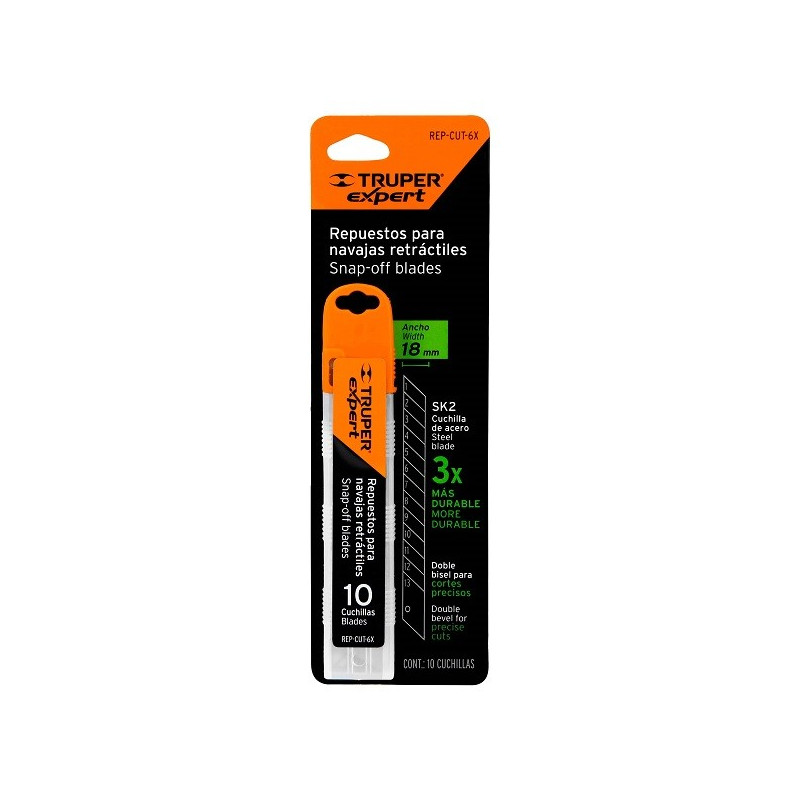 Cuchillas de repuesto 18mm 10u SK2 para cutters 16976 16977 16974 22396 22405 REP-CUT-6X, Truper 100099