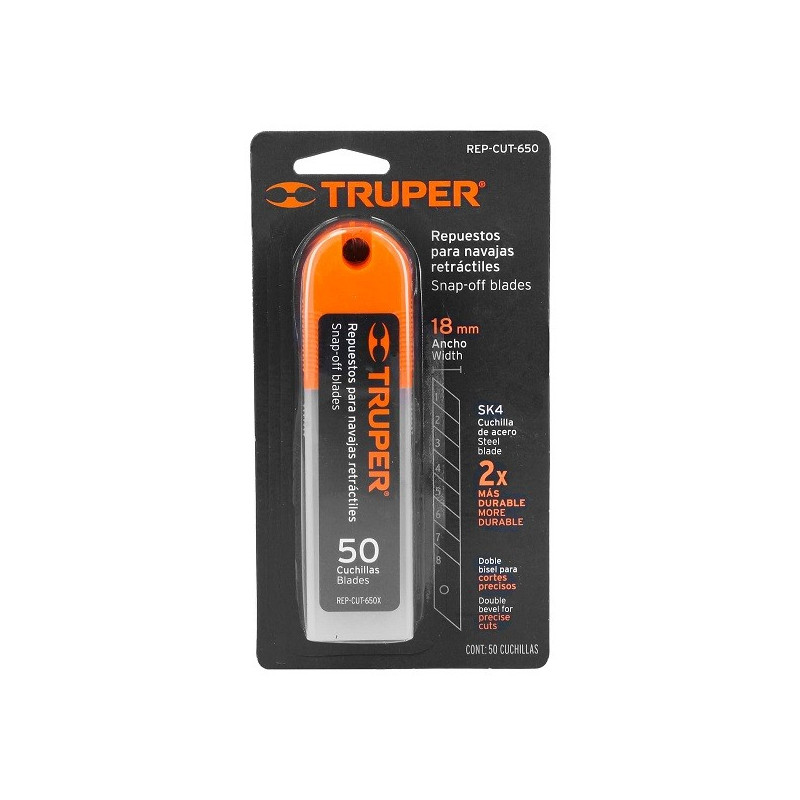 Cuchillas de repuesto 18mm 50u SK4 para cutters 16976 16977 16974 22396 22405, Truper 100101