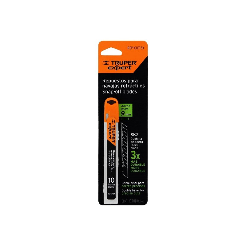Cuchillas de repuesto 9mm 10u SK2 para cutters 16971 16968 22403 REP-CUT-5X, Truper 100098