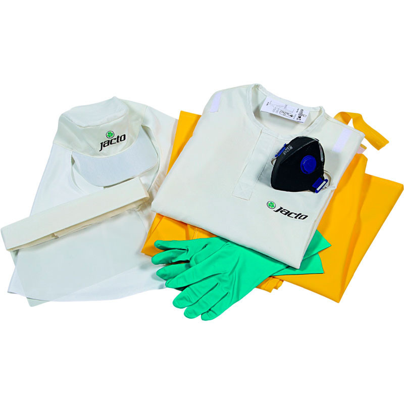 El uso de EPI es esencial para reducir los riesgos impuestos al operador durante el trabajo diario. Por eso, Jacto dispone de un completo kit de EPI, hidro repelente y con material de alta calidad, que proporciona la protección deseada sin dejar de lado la comodidad.