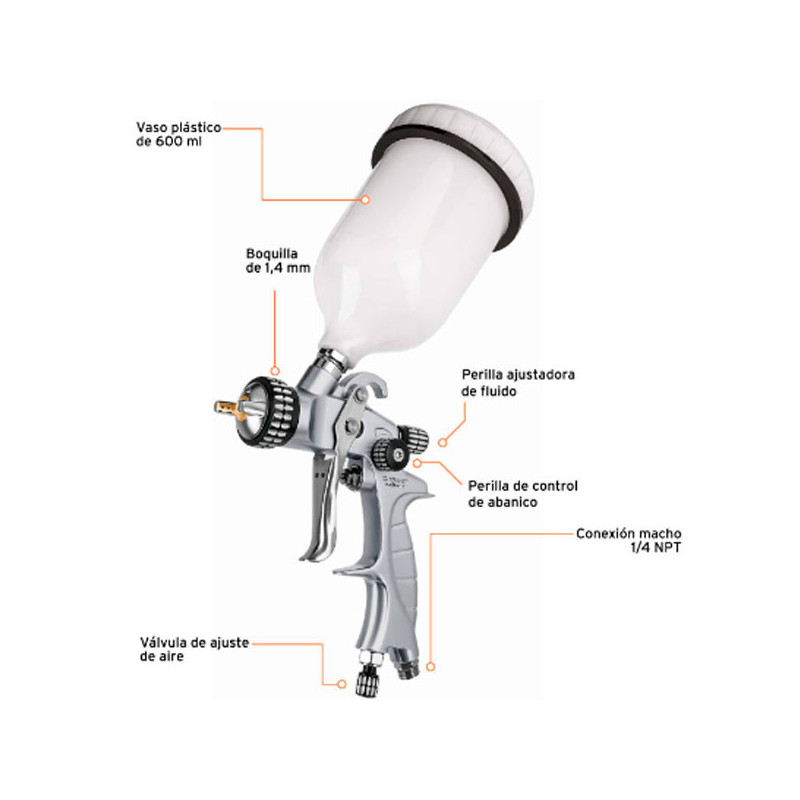 Pistolas de Pinturas Gravedad 600ml HVLP T1.4mm VB 3Control A20-24cm Automotriz Pro, PIPI-440X Truper 14031