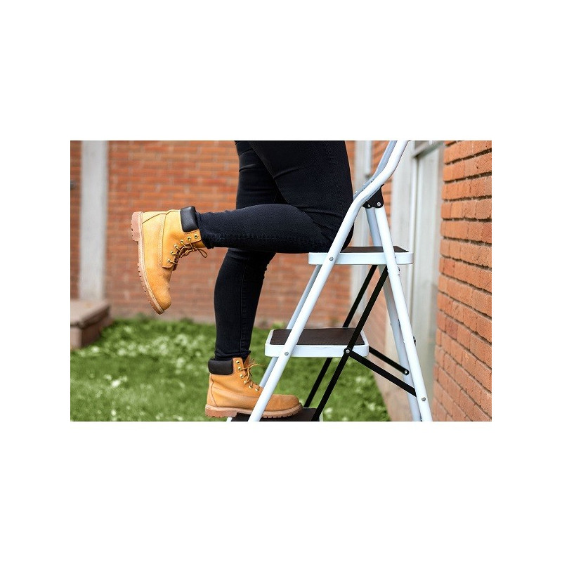 Escalera 3 Peldaño Tubulares Plegable, 150kg Tipo III, Peso 6.2kg, Alcance Max. 2.2m, ESTU-3P 24120 Pretul Plegables para fácil almacenamiento y transportación Fabricadas en tubo de acero Peldaños antiderrapantes con plataforma amplia Tacones plásticos antiderrapantes Con bloqueo de seguridad