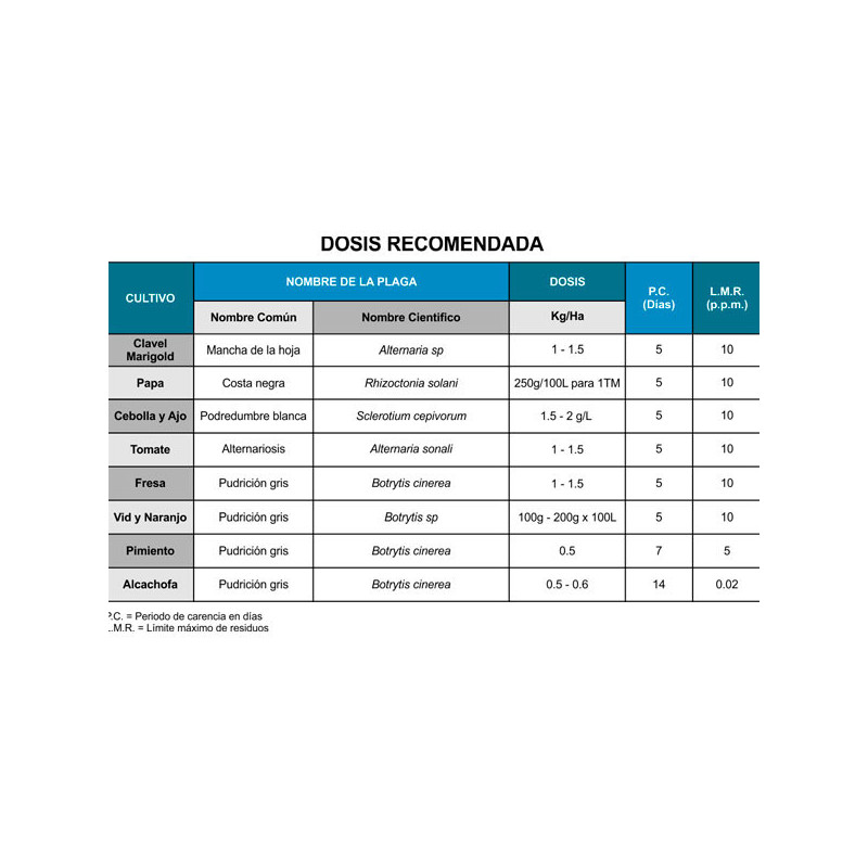 Rovral 50 PM es un excelente fungicida de acción protectante o de contacto que afecta todas las fases del ciclo de desarrollo de los patógenos.