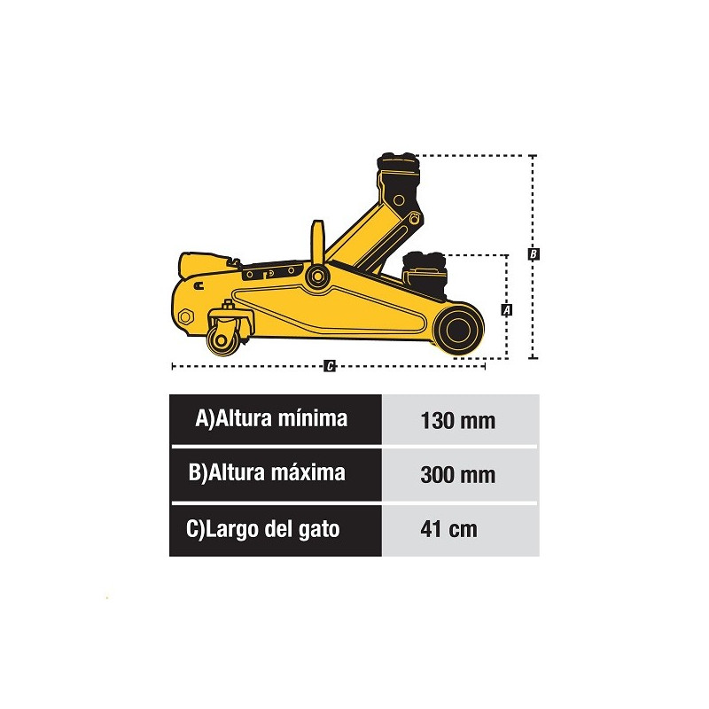 Gata Tipo Lagarto 3 T, Altura M 51cm M 8.5cm 34.5kg, con Elevacion Rapida, GAPRO-3PB, 14806 Truper Doble bomba que incrementa la fuerza y velocidad de levantamiento en 9 movimientos Llantas traseras giratorias para fácil manejo Válvula de seguridad que evita la sobrecarga Perfil extra bajo para ajuste fácil y seguro en vehículos bajos Centro de gravedad...