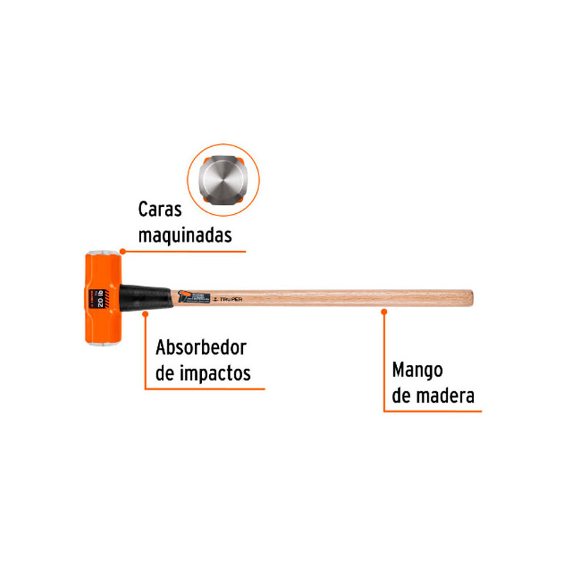 Combas 20lb Octagonales Mango36", Cara Maquinada con protector termoplastico, MD-20M 16516 Truper