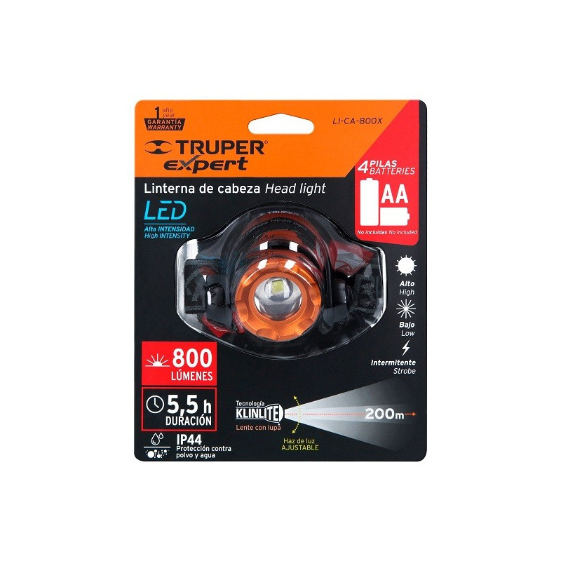 Linterna de Minero 800 Lumenes 4Pilas AA ABS Aluminio, Truper 11853