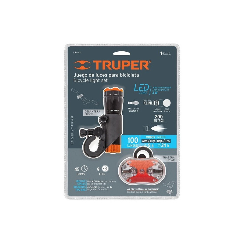 Linternas para Bicicleta 100 Lumenes Delantera y Trasera 5AAA, Truper 16798