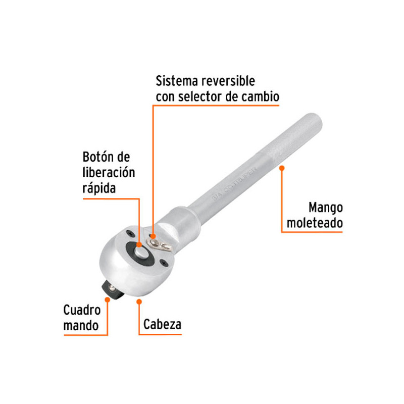 Ratchet de Liberacion rapida, cabeza de pera sistema reversible, encastre 3/4, M-5649 13900 Truper