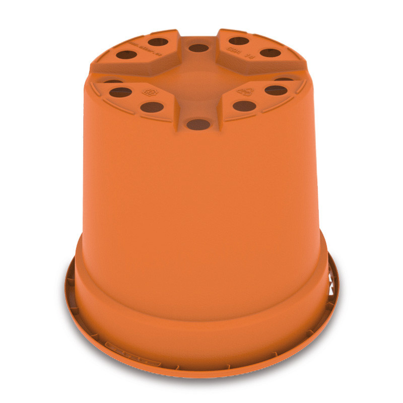 Macetas de Plastico 13 x 10.2cm Termoformadas Anaranjado, VCG 13 Maceta con borde extra ancho y diámetro optimizado. Reducción de tiempo de cultivo. Crecimiento rápido y plantas sanas mediante riego y drenaje óptimos. Tasa de pérdidas muy baja. Sin alteración o daños en las raíces por penetración de luz.Diámetro superior: 13 cmAltura: 10.2 cmVolumen: 0.89...