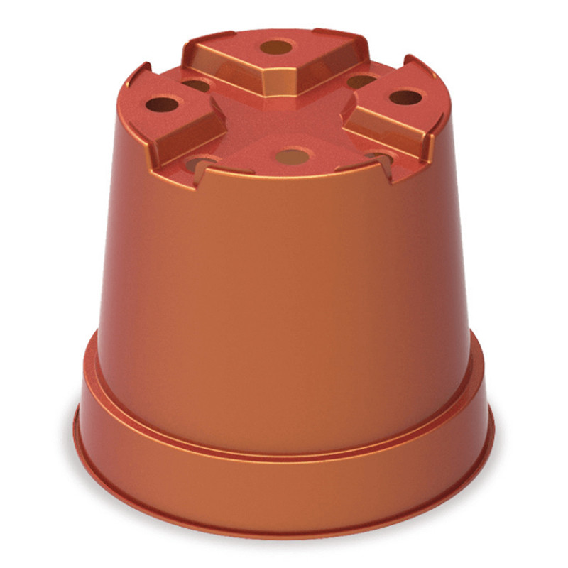 Macetas 24x21cm 6L Polipropileno Arcilla Serie CDA24 Inyectadas, ALBER La Serie CDA de Moldeados Plásticos Alber está compuesta por macetas de plástico diseñadas para viveros que cultivan planta verde, vivaces y planta ornamental. Las macetas de la Serie CDA son redondas, presentan una conicidad de 5 grados y un fondo en cruz con drenaje en dos niveles.