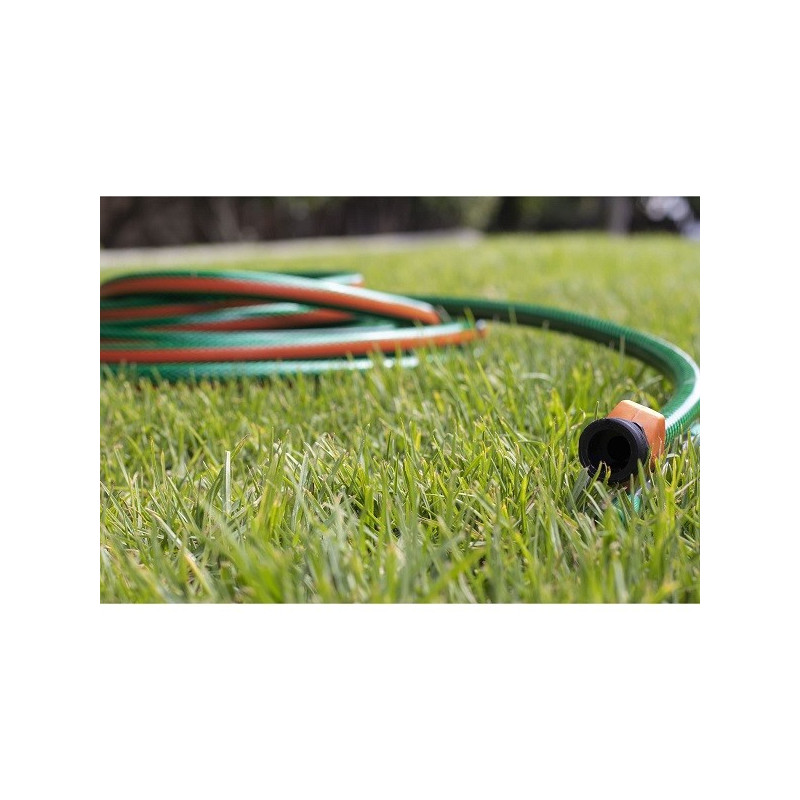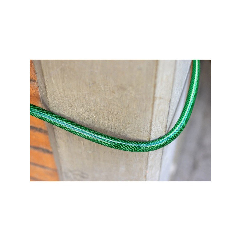 Mangueras 5/8" x20m 4capas SReforzada ConexionesMetalicas Truper 16035 Manguera con refuerzo de tejido radial resistente a la alta presión Conexiones metálicas robustas de máxima durabilidad con resorte que protege la manguera y evita deformaciones Tecnología anti-torceduras, garantiza un flujo continuo Uso residencial