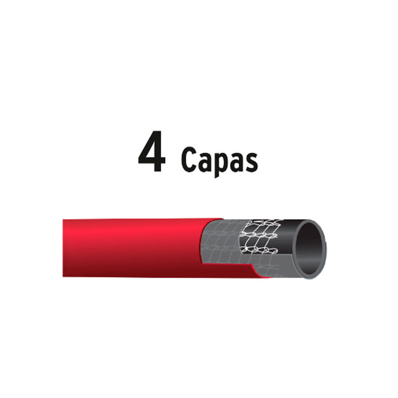 Mangueras 5/8" x20m 4capas SReforzada ConexionesMetalicas Truper 16035 Manguera con refuerzo de tejido radial resistente a la alta presión Conexiones metálicas robustas de máxima durabilidad con resorte que protege la manguera y evita deformaciones Tecnología anti-torceduras, garantiza un flujo continuo Uso residencial