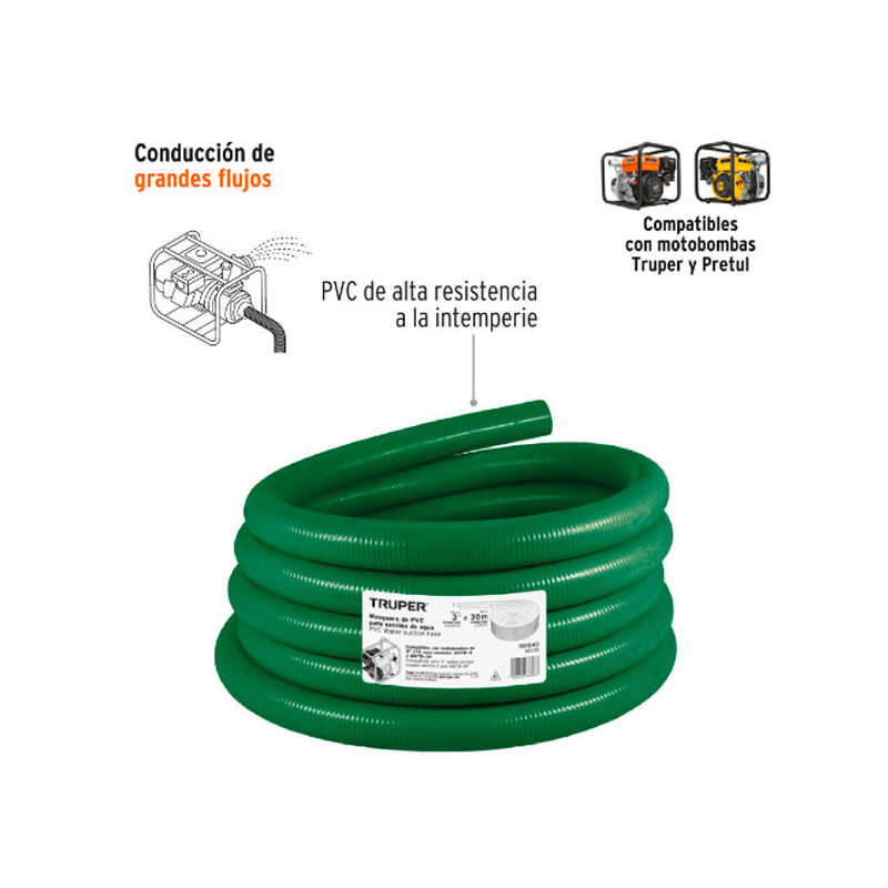 Rollos Mangueras Rigida 3" x30m succion para motobomba Truper 101040