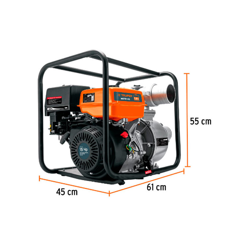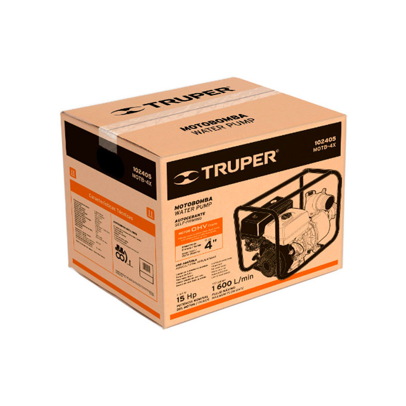 Motobombas 4" 15HP 1600L Motor Gasolina 420cc 4T 30m Truper 102405